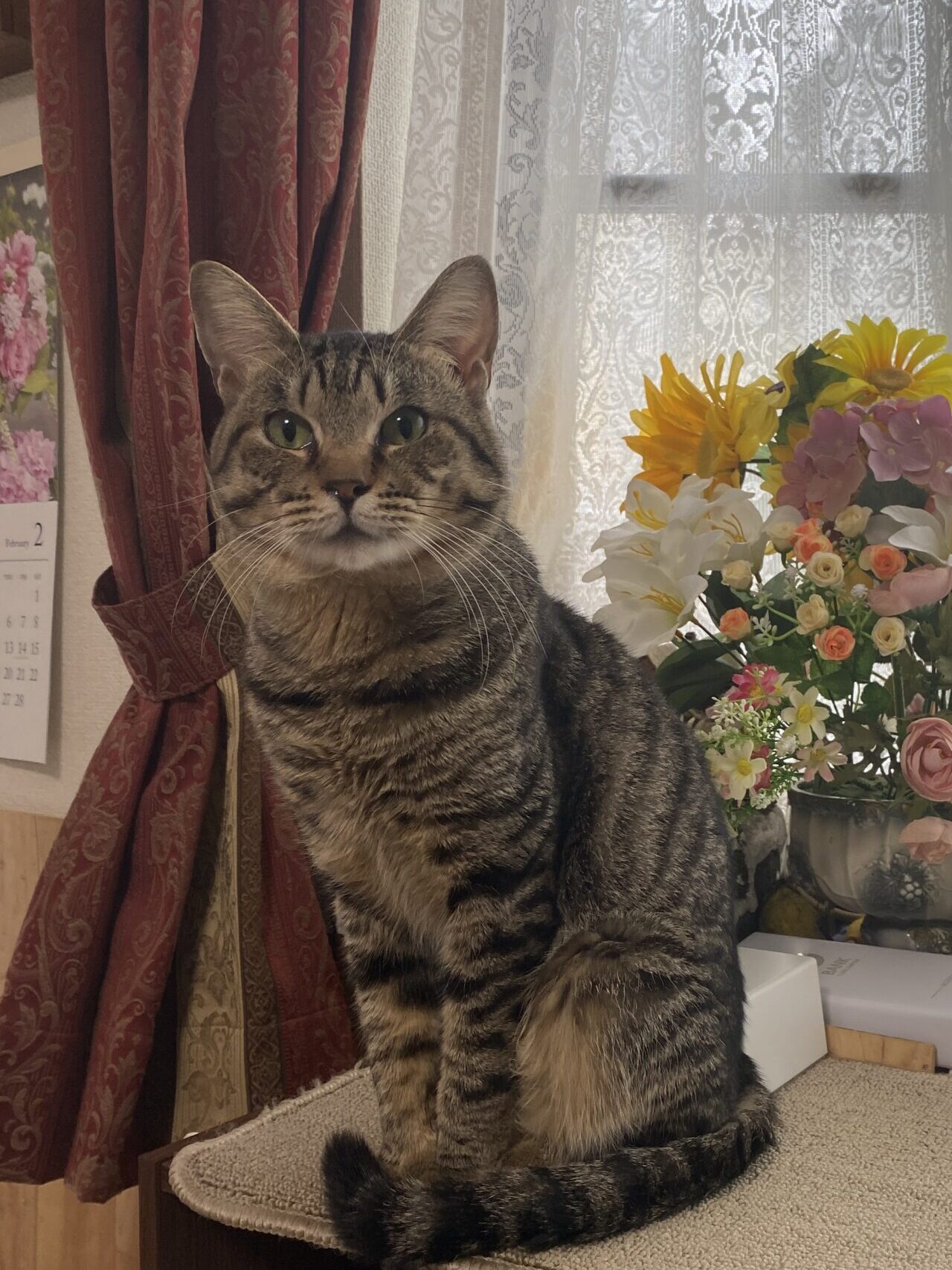 私の数少ない大切な家族、野良出身のキジトラ猫のマル。