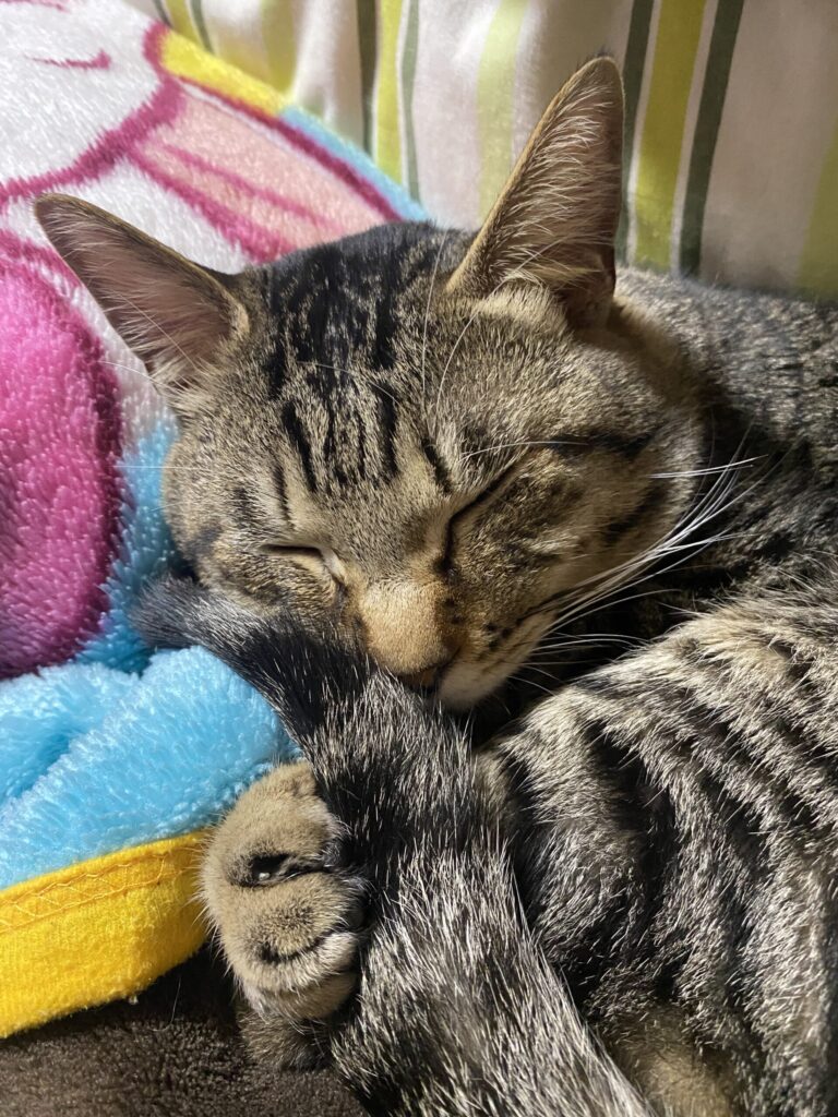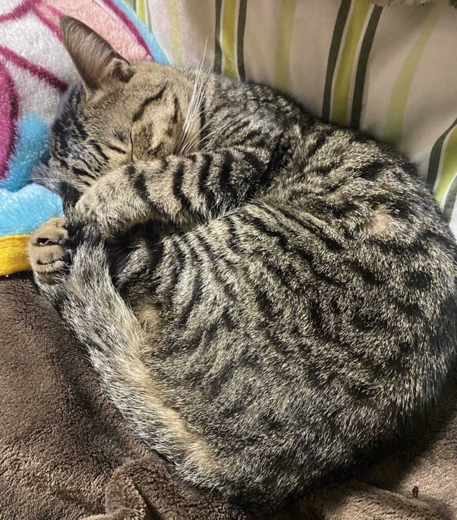 そして食べ終わると、また人(猫)が変わったかのようにおとなしくなり、あっという間に眠りにつくのです。このツンデレ(デレはどこ?)の切り替えの早さには、毎回驚かされます。